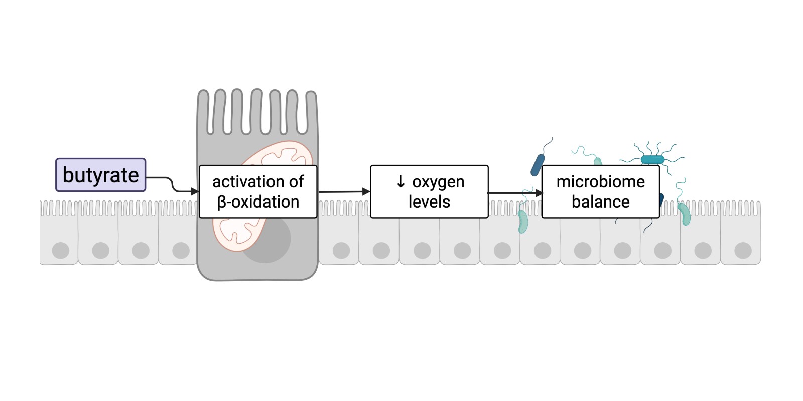 Butyrate helps reduce oxygen levels in the gut, which helps beneficial anaerobic bacteria grow and thrive.*